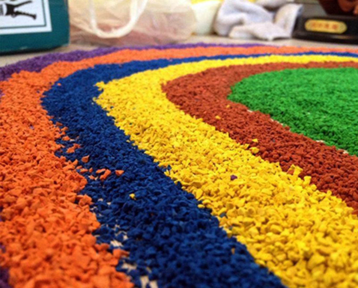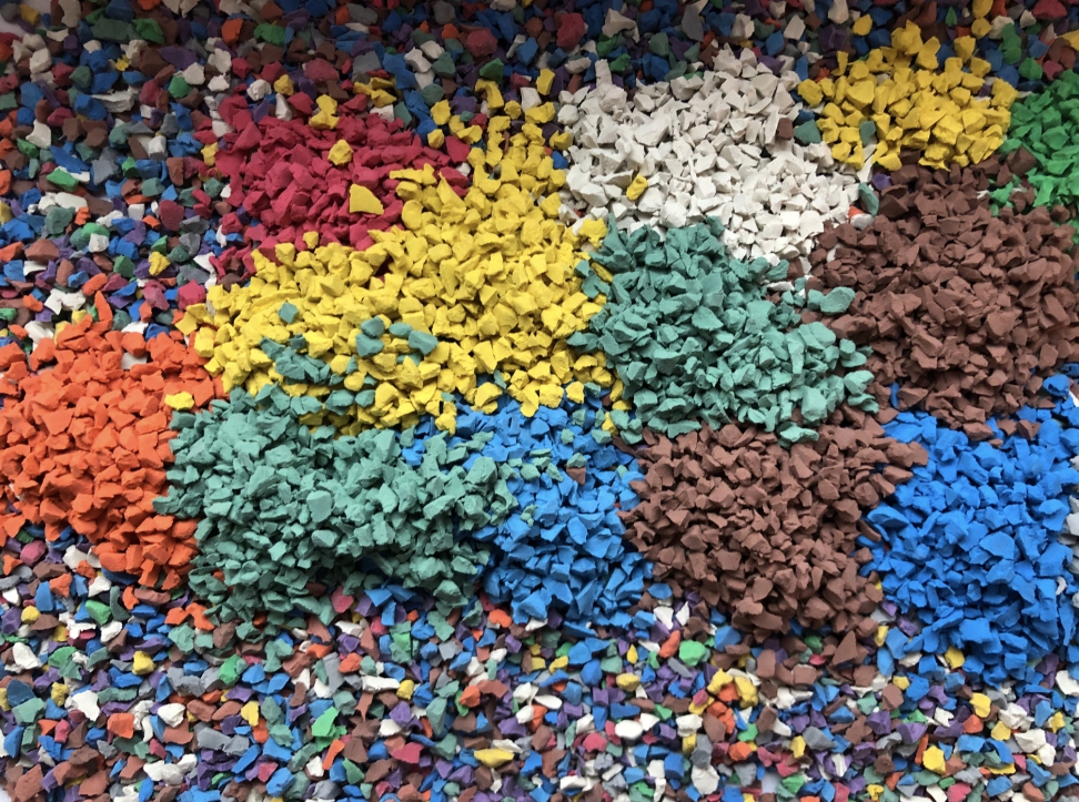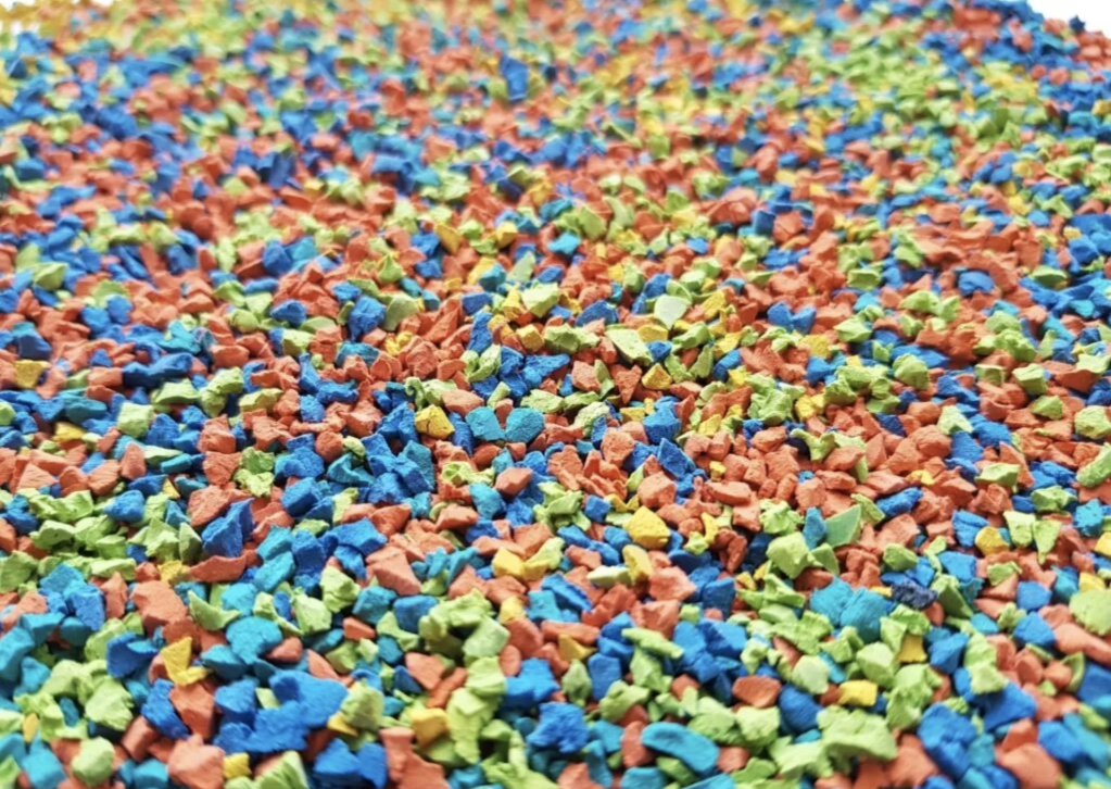 Гранулят из синтетического каучука. Входит в состав бесшовных покрытий на детских и спортивных площадках. Безопасный для здоровья человека материал. Сохраняет яркость цвета на протяжении всего срока эксплуатации — не менее 10—15 лет.